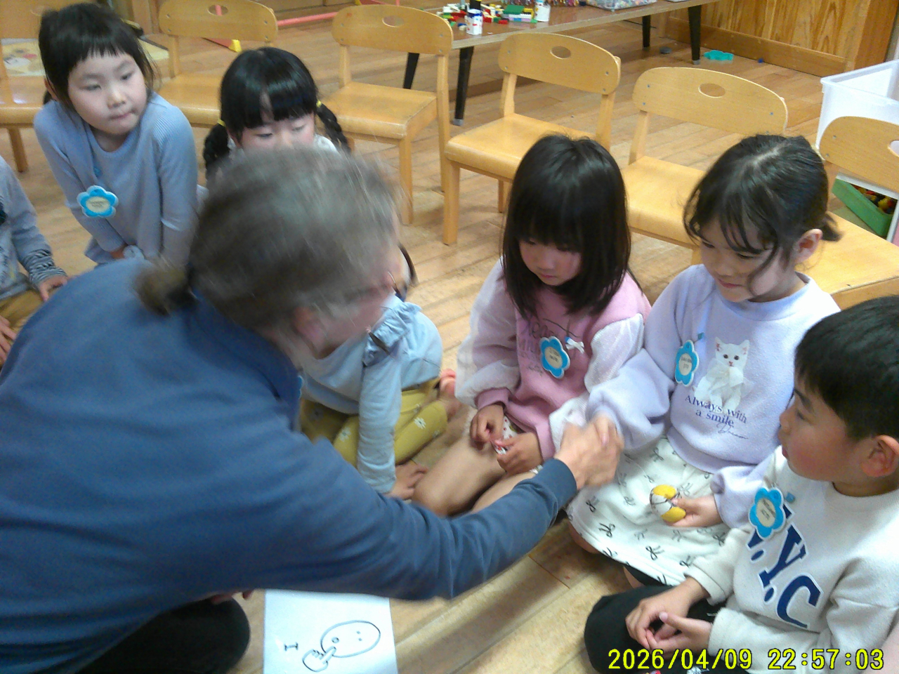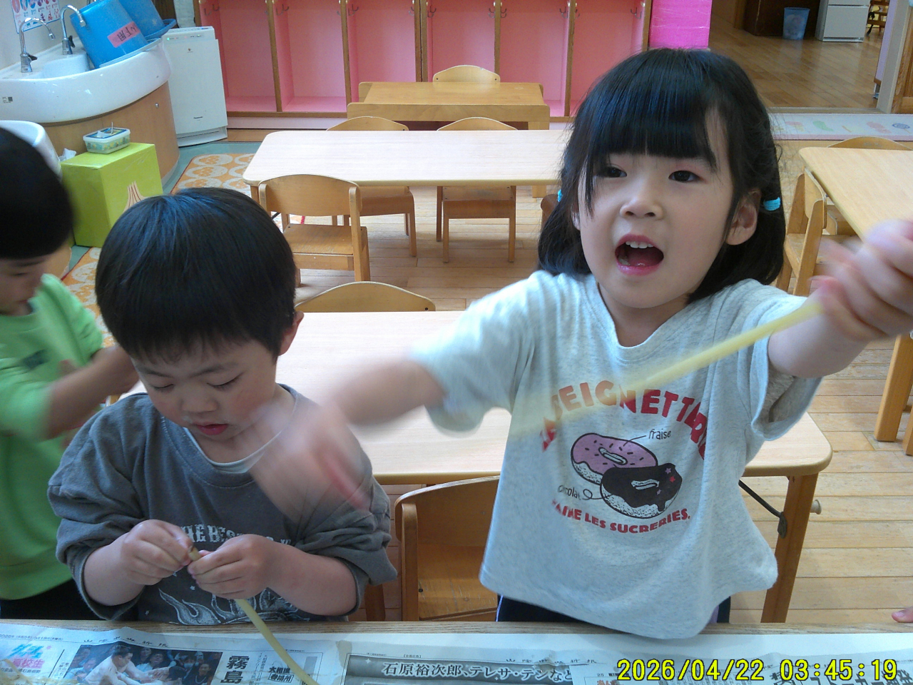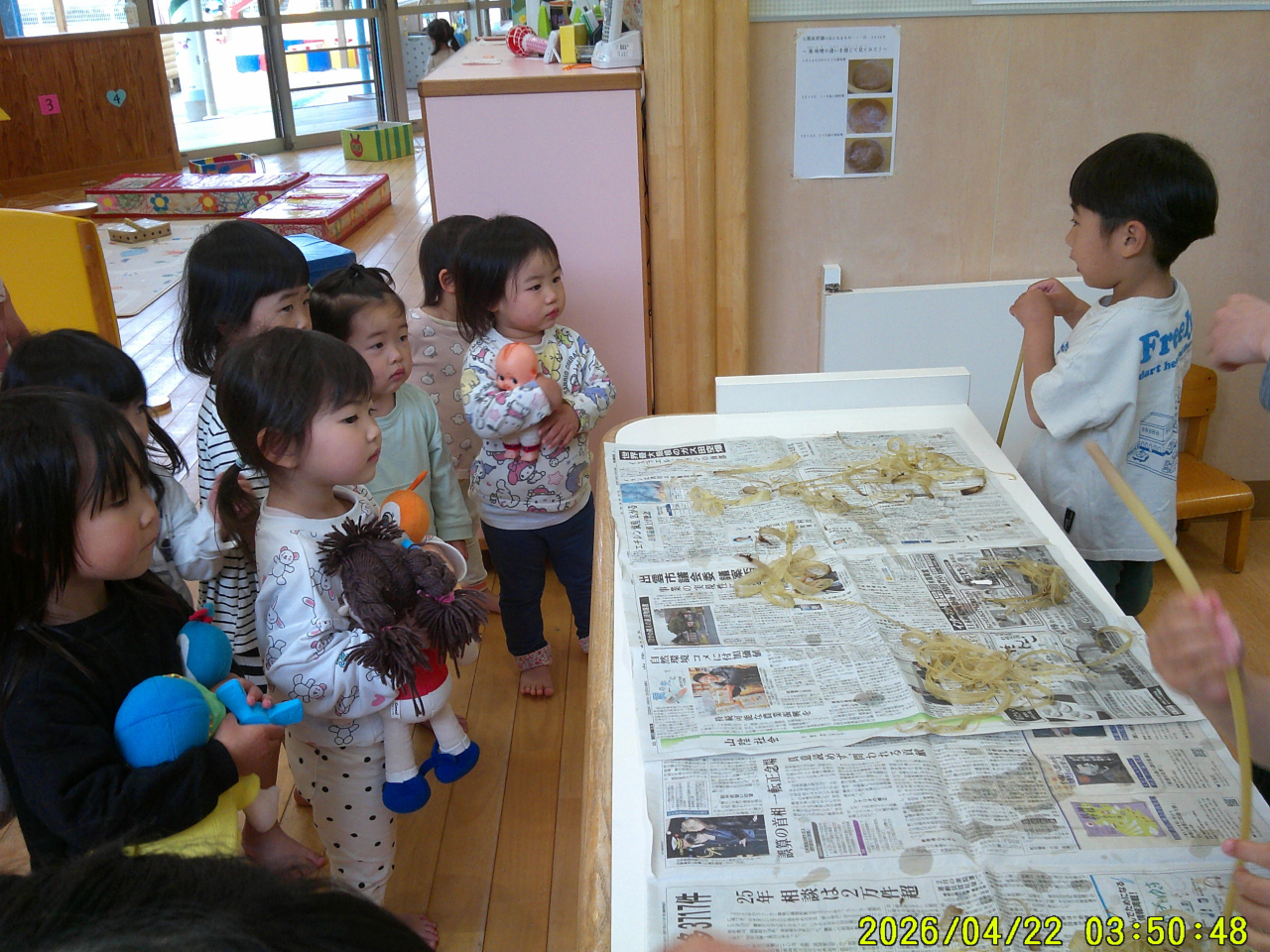 4月1日 新しい年度が始まりました。新しく入られたお友だちも元気に来てくれて嬉しいです。1つ大きいクラスになった子どもたちは、前日と変わらず、とっても元気!!おめでとう会では歌をうたったり新しいお友だちや先生の名前をきいたり楽しくすごしました。保護者の皆様、今年度もよろしくお願い致します。