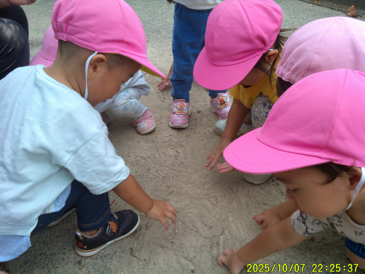 10月6日(月)ベジばぁばが持って来てくれた❝ニラ❞を使ってチヂミ作りに挑戦です。お家の方に用意していただいたエプロンと三角巾を身に着け、とっても嬉しそうです。みんなステキ♡♡手洗いをしっかりして、さぁ・・・!包丁でニラを切ってみました。ベジばぁばと一緒に切ったので安心です。混ぜたり、ホットプレートに流し入れたり、かぼちゃあんとみそあんも一緒に作ってみました。焼き上がったらすぐにかぼちゃあんとみそあんをぬり「いただきまぁ~す!!」 楽しかった!おいしかった!と、感想をしっかり言え、ビックリしました。今度は何を作ろうかなぁ?ベジばぁば!!また、よろしくお願いしま~す。