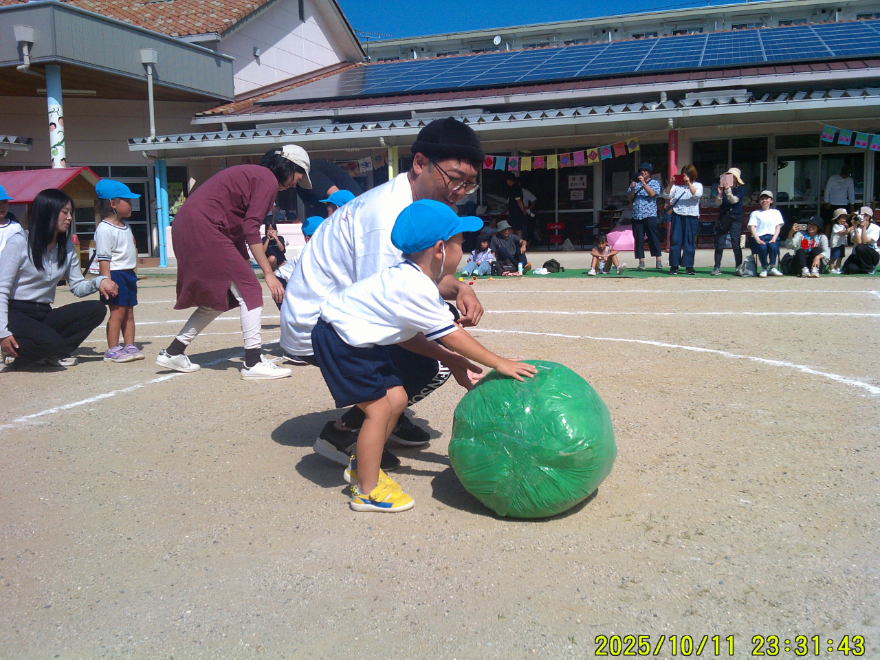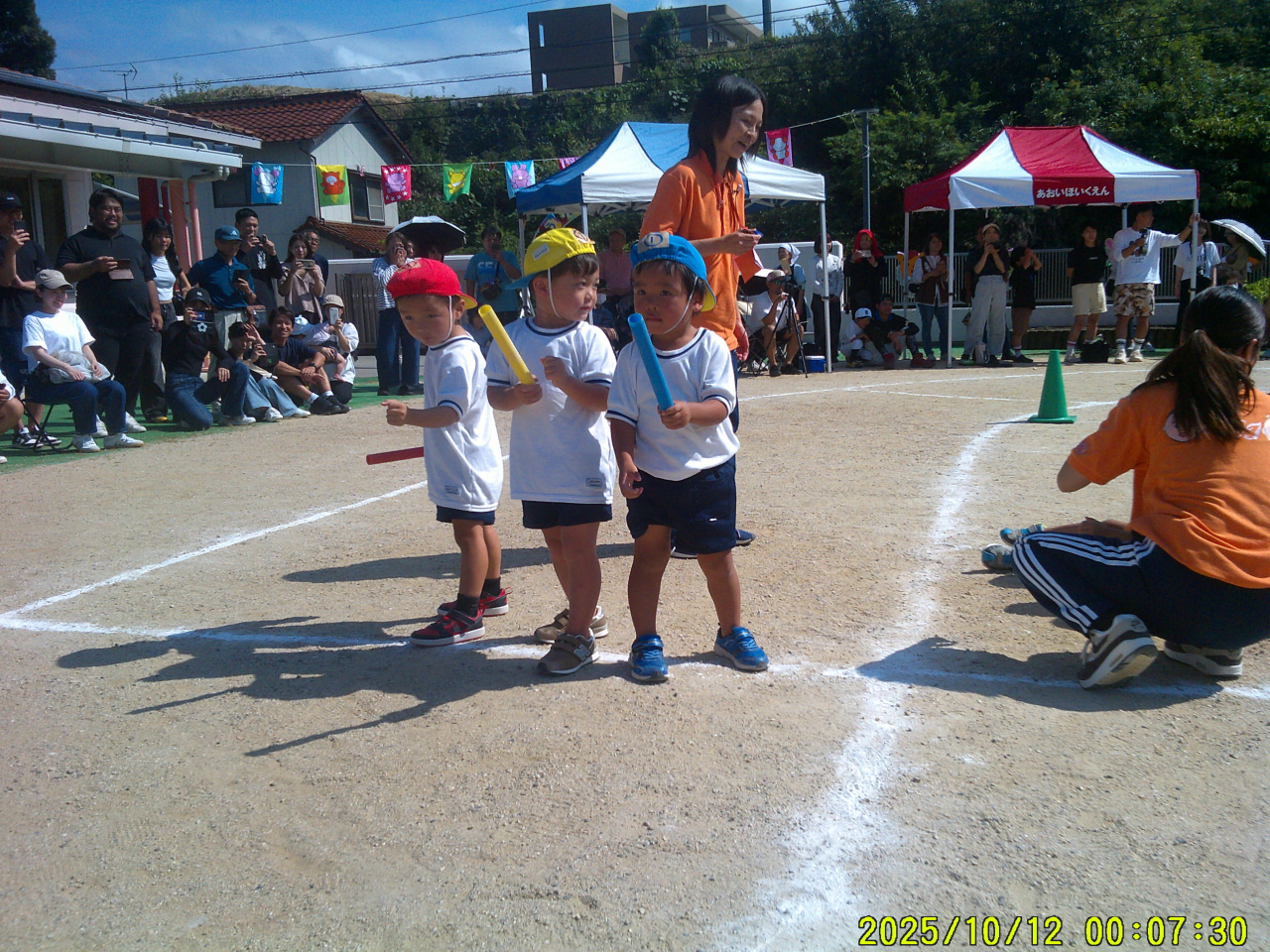 10月12日(日)お天気に恵まれ、園庭で行うことができました。欠席もなくみんなが元気に参加でき、ケガなく無事終えることが出来ました。子どもたちはもちろん、保護者さんの笑顔がたくさん見られ、又、拍手いっぱいであたたかい雰囲気の中、子どもたちは安心して 競技を行っているナ~と感じました。ご協力ありがとうございました。役員の皆様、お世話になりました。子どもたちってスゴイ・・・!改めて感じたうんどう会でした。