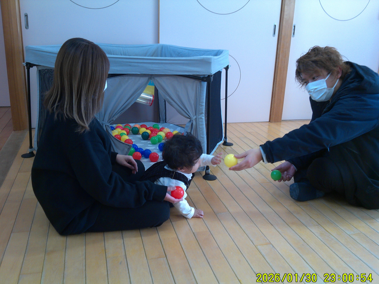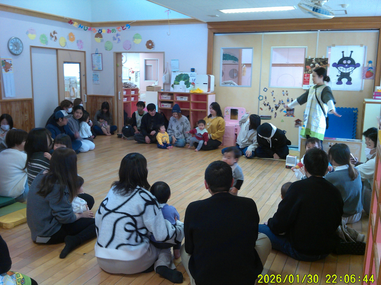 1月31日(土)今年度2回目の親子活動でした。子どもたちはお父さん、お母さんと一緒にお部屋の中へ・・・不思議そうな、でも嬉しい表情がみられました。大好きな歌を歌ったり、音楽に体をゆらしたり、かわいい姿も見てもらえました。活動を開始すると普段のあそびを一緒に楽しんでもらったり、手をつないでふれあいの時間にもなれたと思います。子どもたち、お父さんお母さんの笑顔、楽しそうな姿に私たちもとても嬉しく感じました♡