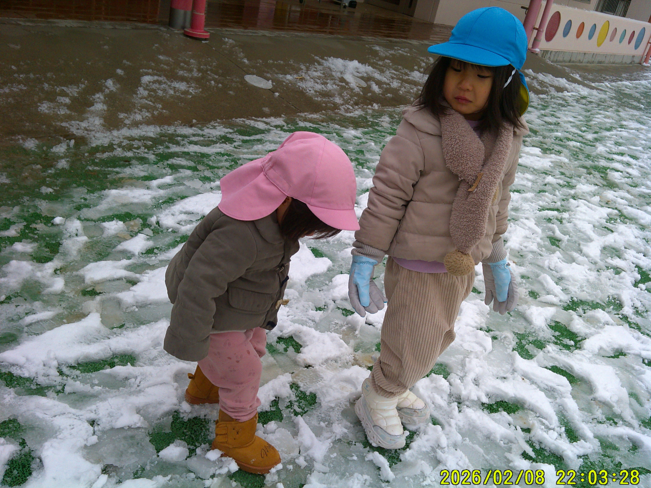 2月9日(月)雪がつもって子どもたちは大喜びです。早く園庭に出たくって仕方ない様子でした。ジャンバー、マフラー、長ぐつ、てぶくろ!!準備はOK♡雪だるまを作ったり、カップに雪を集めたり、雪の上を歩いてみたり・・・みんなそれぞれに楽しんでいました☃雪はすぐにとけてしまい子どもたちは残念そうでした。また雪が積もったらいっぱい遊ぼうね。大人は雪がとけてホッ・・・ですね。