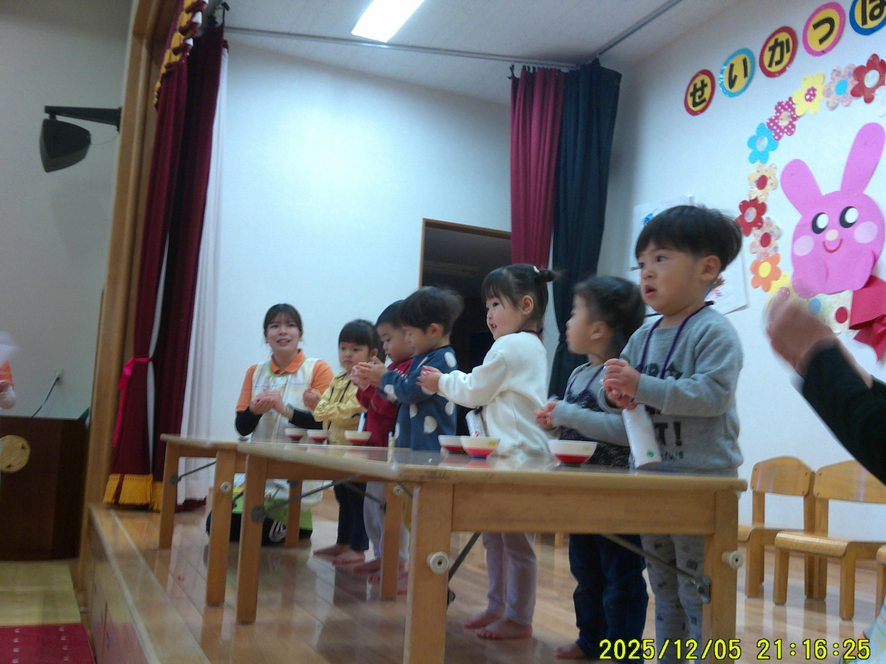 12月6日(土)無事に生活発表会を終えることが出来ました。たくさんの皆様にお越し頂き、子どもたちは嬉しかったことでしょう。どのクラスもみんな頑張りました。また1つ大きく成長した子どもたちです。ご協力ありがとうございました。