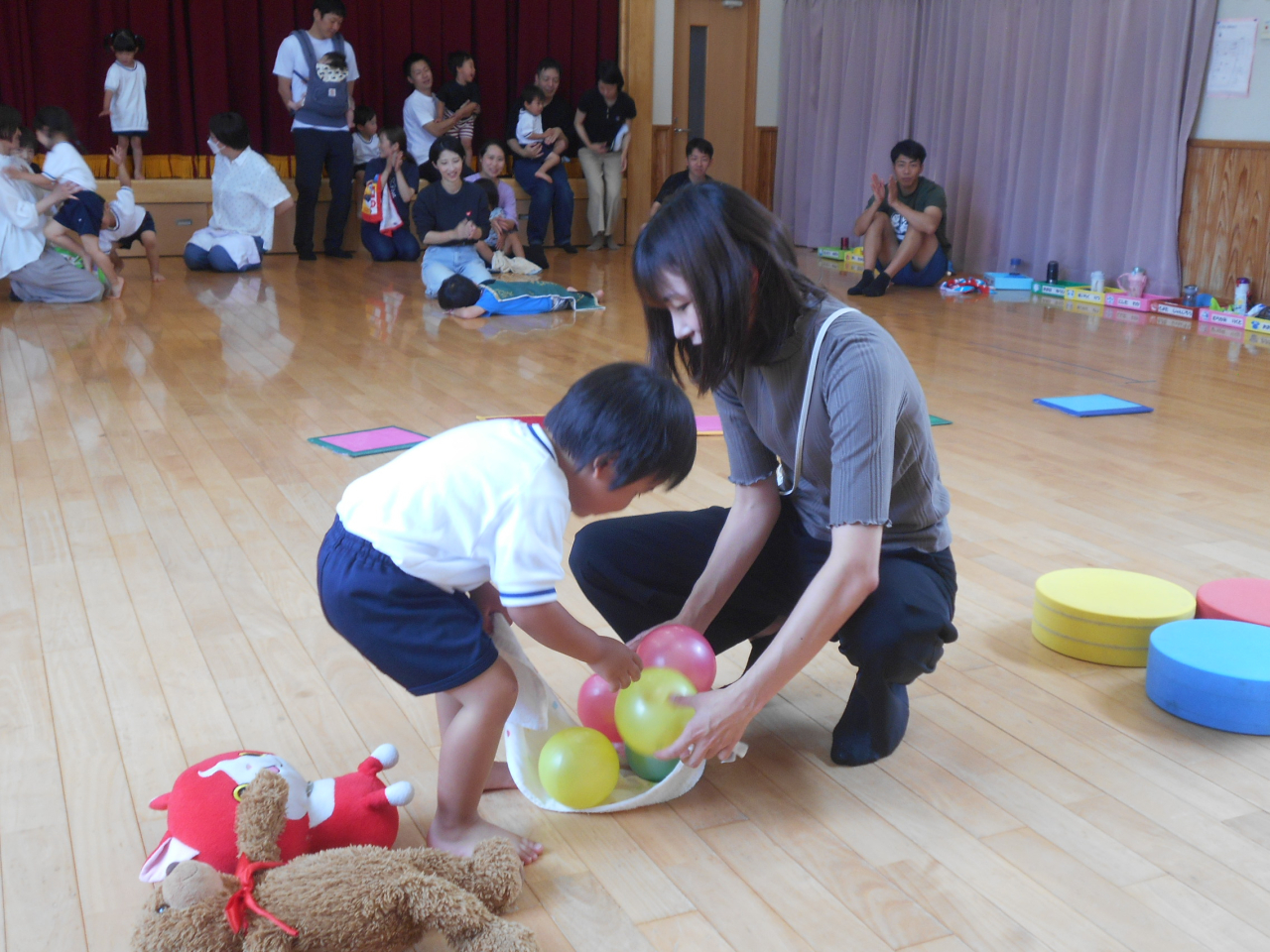 インストラクターの高野さんをお招きして、保護者会主催のふれあい活動を行いました。大型遊具を使って体を動かしたり、フェイスタオルを使ったふれあい遊びをし終始にぎやかな時間となりました。最後には大型遊具を使って子どもたちが遊び場を作りました。子どもたちが自分たちで考えながら工夫する姿が見られ、とても楽しんでいましたよ♡