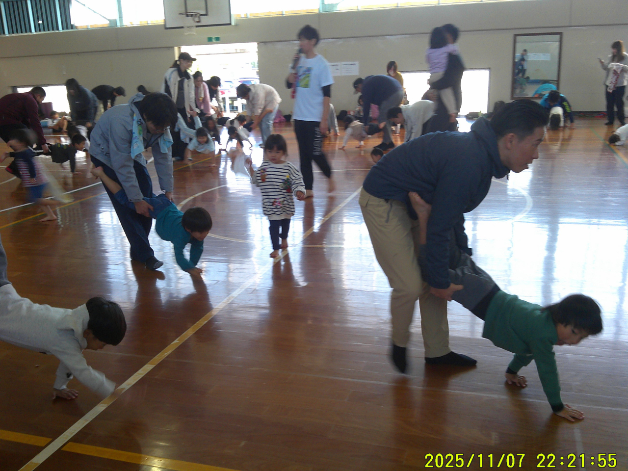 インストラクターの高野さんをお招きして、保護者会主催のふれあい活動を行いました。大型遊具を使って体を動かしたり、フェイスタオルを使ったふれあい遊びをし終始にぎやかな時間となりました。最後には大型遊具を使って子どもたちが遊び場を作りました。子どもたちが自分たちで考えながら工夫する姿が見られ、とても楽しんでいましたよ♡