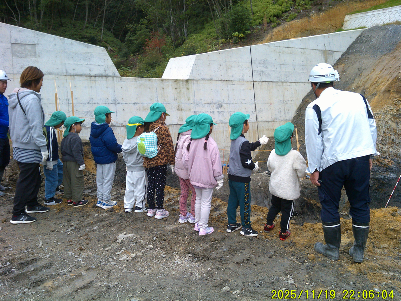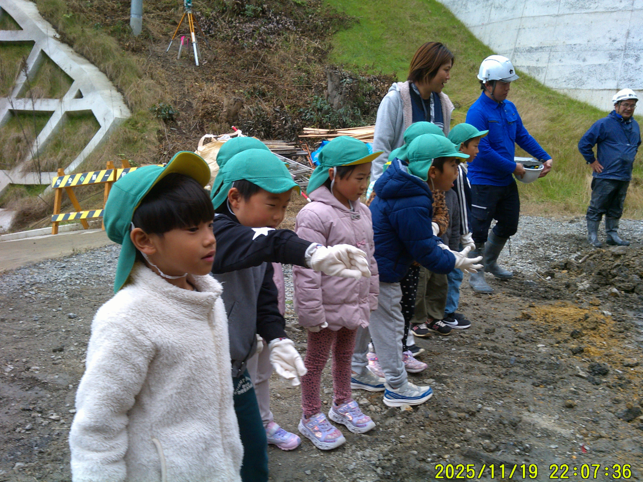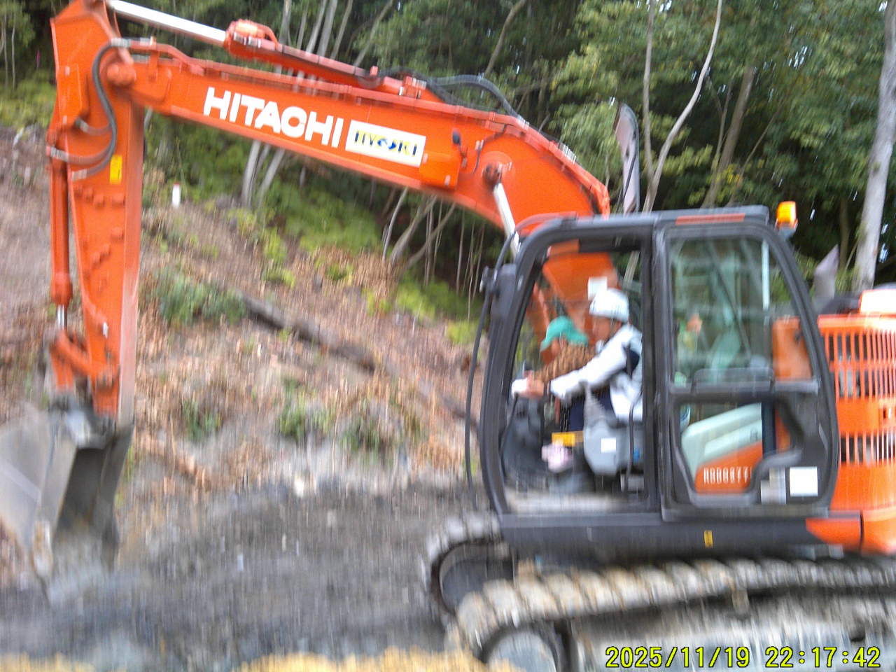 11月20日(木)益中の少し先で工事をしておられる徳栄建設さんに「ショベルカー見においで!」とお誘いをうけたので、早速出かけました。大きく深く掘ってある穴に驚き、ショベルカーを運転させてもらい喜び、短い時間でしたが楽しんでいました。「またおいで」と声をかけてもらい、更に大喜びです。徳栄さん!ありがとうございました。