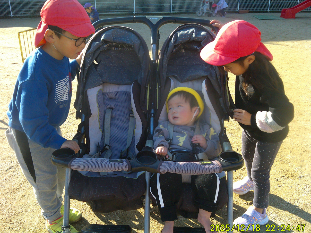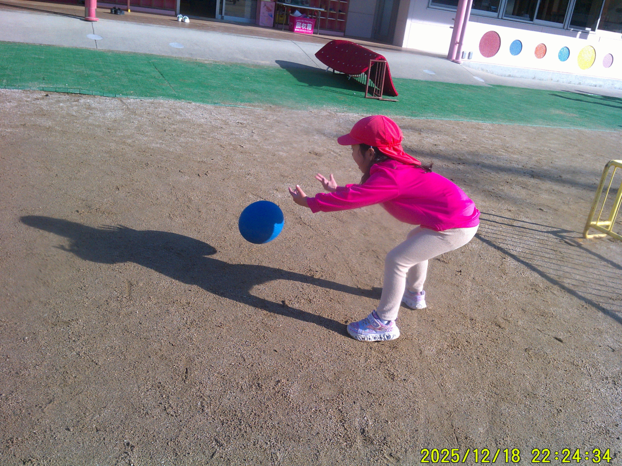 今日も園庭は大にぎわいです。たくさんのクラスが園庭に出て遊んでいます。すべり台、砂場、ボール遊び、三輪車などなど・・・自分の好きな場所でしたい遊びを存分に楽しんでいます。あちこちで子どもたちの❝わくわく❞が広がっていて見ている先生たちもわくわくしています。たのしいねっ♡