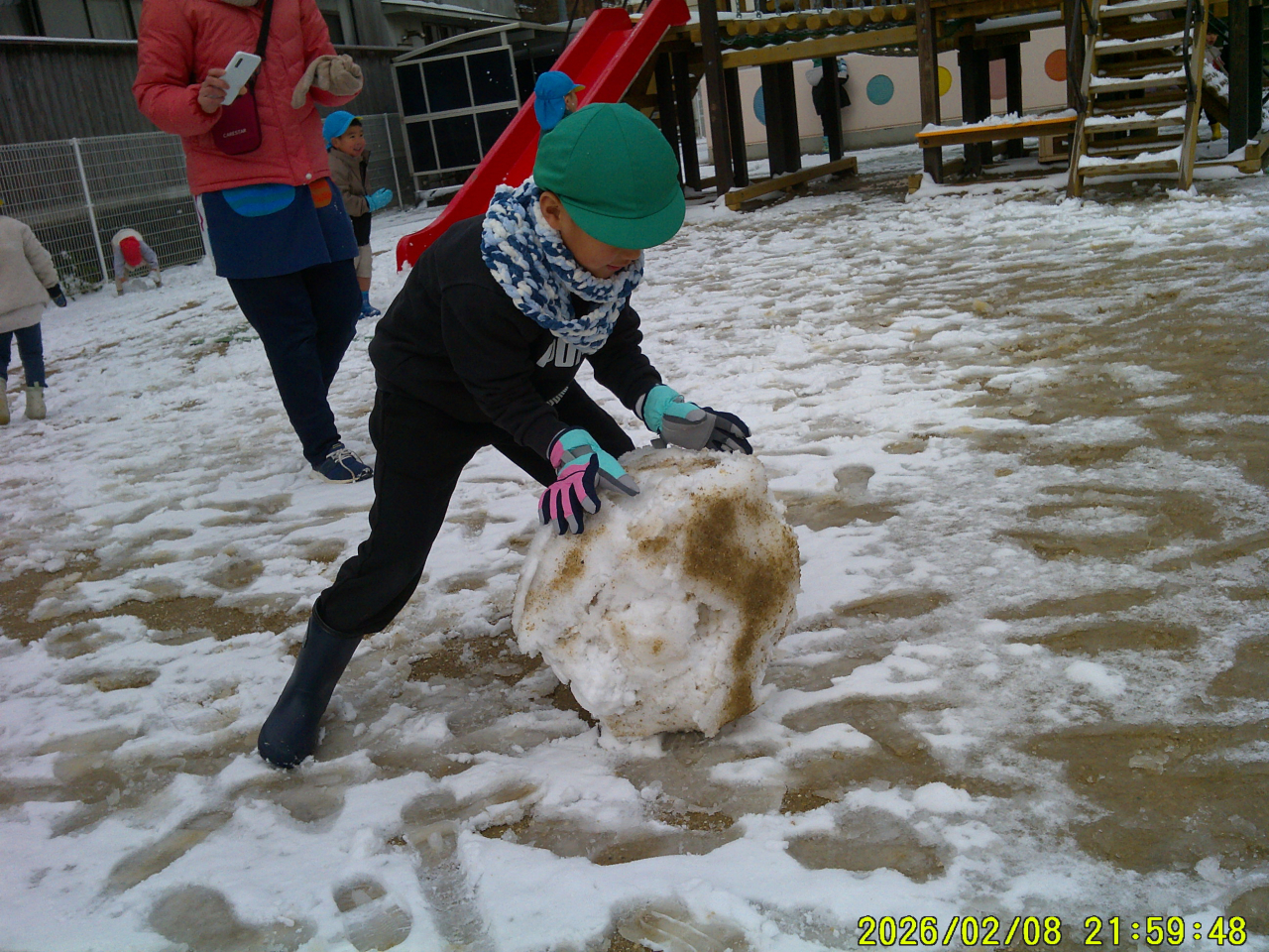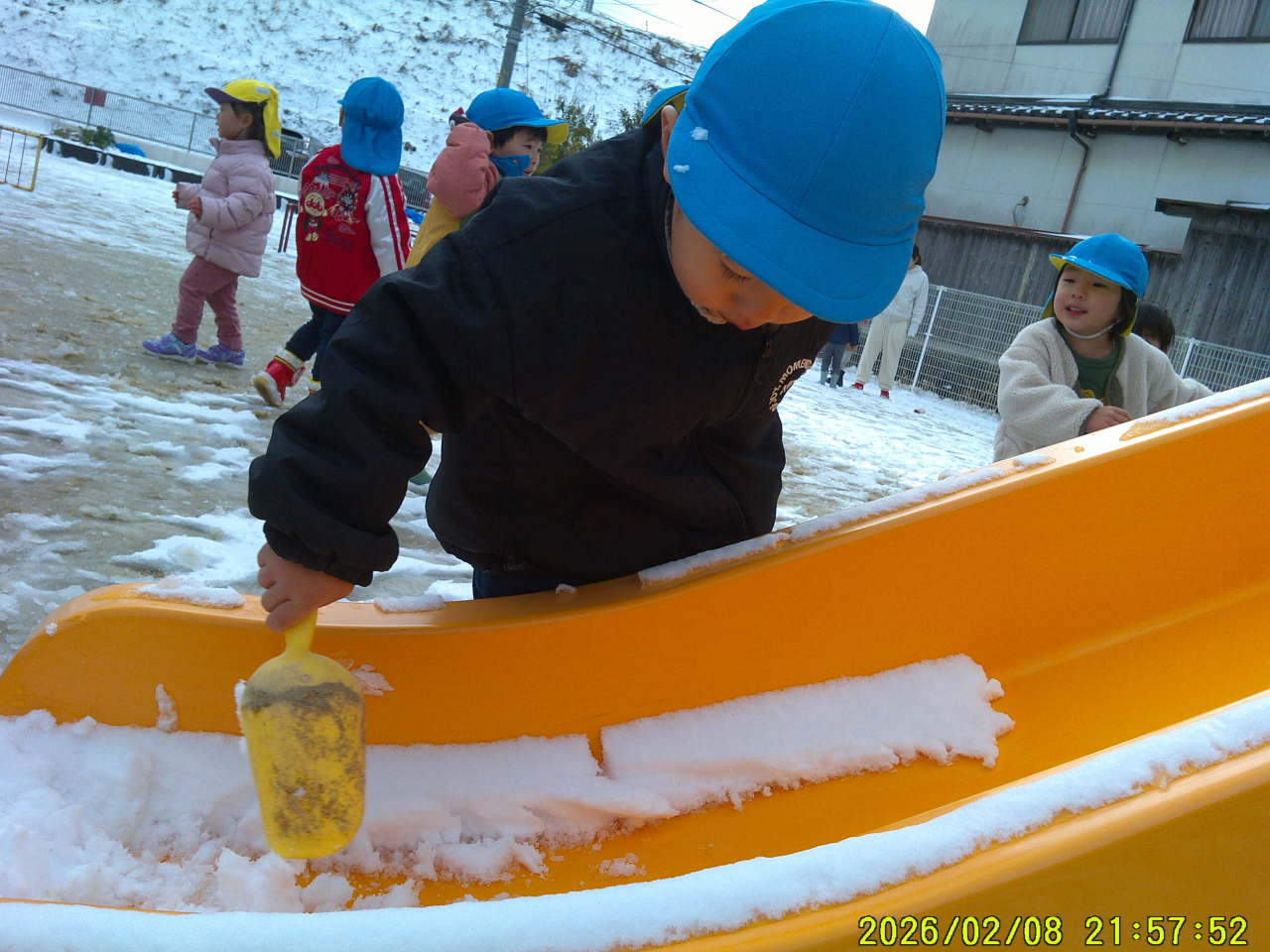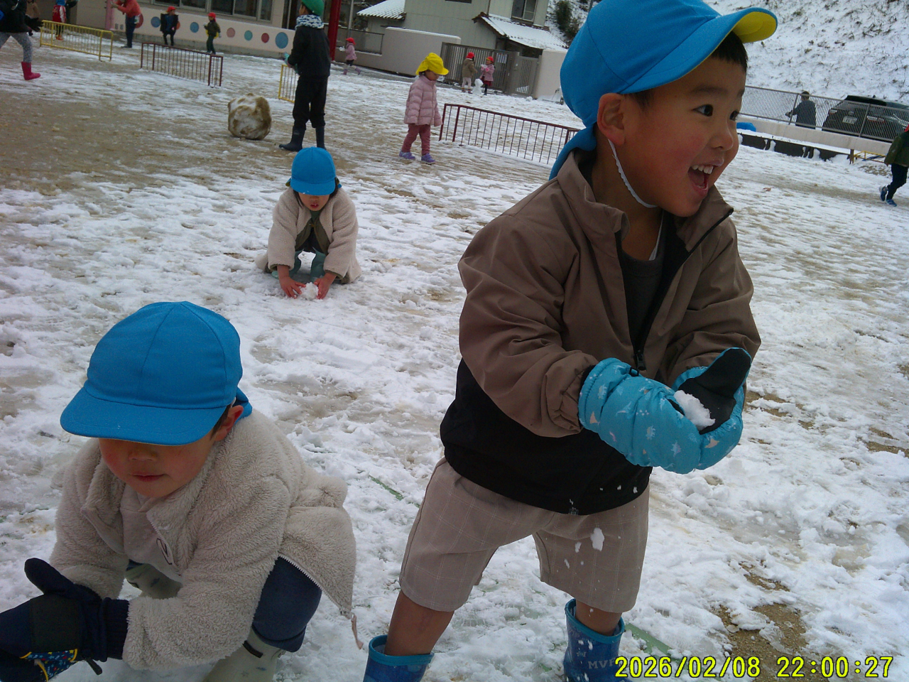 2月9日(月)雪がつもって子どもたちは大喜びです。早く園庭に出たくって仕方ない様子でした。ジャンバー、マフラー、長ぐつ、てぶくろ!!準備はOK♡雪だるまを作ったり、カップに雪を集めたり、雪の上を歩いてみたり・・・みんなそれぞれに楽しんでいました☃雪はすぐにとけてしまい子どもたちは残念そうでした。また雪が積もったらいっぱい遊ぼうね。大人は雪がとけてホッ・・・ですね。